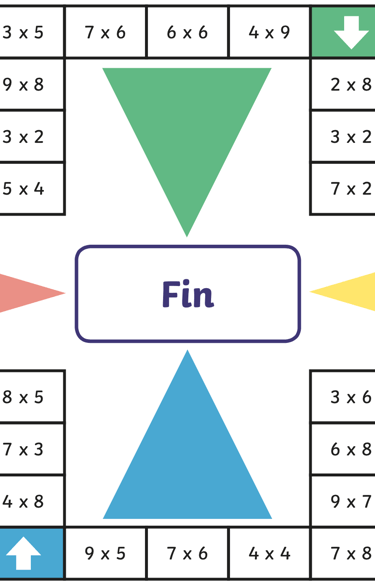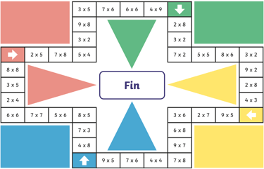 Al caer en una casilla, el jugador debe leer en voz alta la multiplicación en la que haya caído y decir